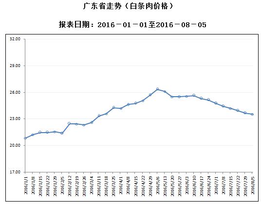 广东省屠宰生猪及肉品价格周报(2016年第32周)