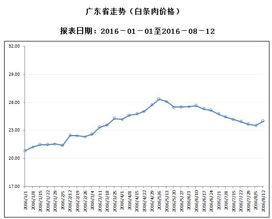 广东省屠宰生猪及肉品价格周报(2016年第33周)