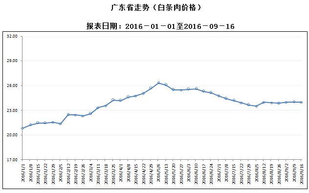 广东省屠宰生猪及肉品价格周报(2016年第38周)