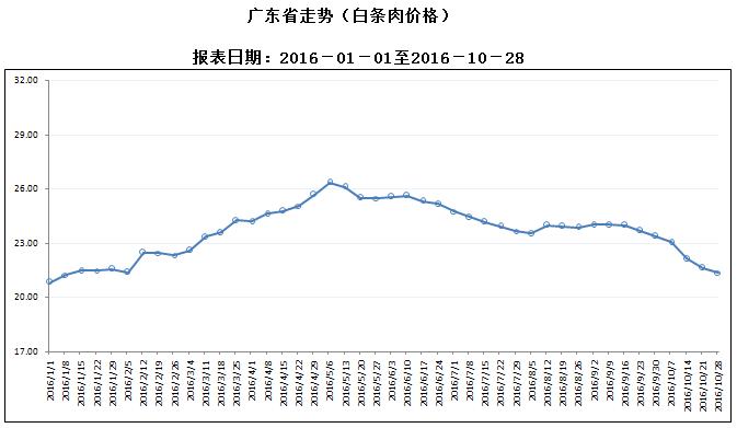 广东省屠宰生猪及肉品价格周报(2016年第44周)