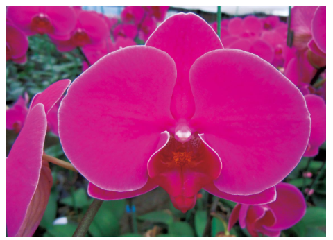 1、生物学特性 :‘翔凤蝴蝶兰’在广州的气候条件下,夏季用水帘和风机进行降温,冬季用加温机进行保暖,植株才能正常生长和发育。 幼苗 (分生苗) 出瓶种植于1.5寸杯, 4-5个月后,株幅达 12cm 左右,进行第 1 次换盆,并用 2.5 寸杯种植;再过4-5 个月后,株幅达 18cm 以上,用 3.5 寸杯换盆种植;又经 6-7个月的栽培管理进入成苗,可进行促成栽培。平地温室中栽培,4-10 月为营养生长期,10 月下旬抽出花芽,进入生殖生长期,12月下旬现蕾, 2月中旬始花, 2-3月为盛花期, 4-5月为谢花期。