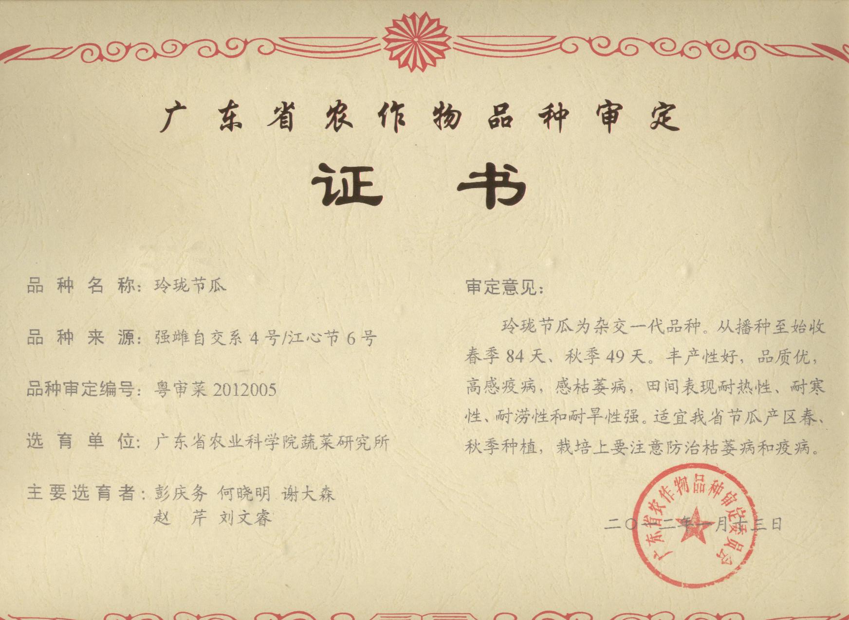 品种来源 杂交一代,母本为优质强雌系4号,父本为优质自交系江心节6号,由广东省农业科学院蔬菜研究所自主选育。