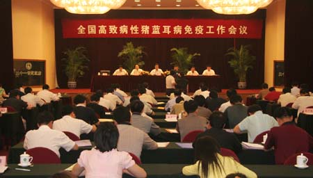 农业部召开全国高致病性猪蓝耳病免疫工作会议,尹成杰副部长强调:狠抓免疫工作落实构建防控长效机制 切实做好高致病性猪蓝耳病防控工作。