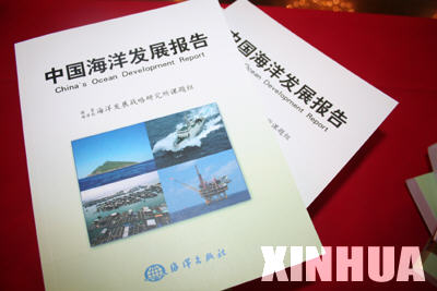 今日首发的《中国海洋发展报告》(新华网赵银平摄)