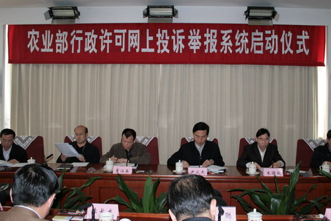 农业部副部长尹成杰在启动仪式上介绍,为深化行政审批制度改革,规范政府职能和行政行为,从源头上预防和惩治腐败,2007年,农业部通过深入调研,设计开发了行政许可网上投诉举报系统。该系统软件自动设定浏览和处理权限,具有收集、汇总、反馈投诉举报信息等功能,确保相关信息得到及时处理,维护投诉举报人合法权益。社会公众只要登陆农业部门户网站—中国农业信息网,即可通过“网上投诉举报”栏目,随时对农业部行政许可工作中存在的问题进行投诉举报,相关信息即时自动转入行政许可网上投诉举报系统。农业部有关司局在对投诉举报信息分类整理后,根据职责分工,在规定时限内,以电话、信函或电子邮件等方式将处理结果反馈投诉举报人。