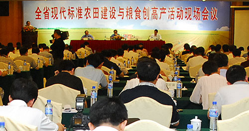 会议充分肯定了湛江市推进现代标准农田建设与开展粮食创高产活动的成功经验。会议强调,推进现代标准农田建设与开展粮食高产创建活动,是继续解放思想,争当农业科学发展排头兵的重大举措;是发展现代农业,建设社会主义新农村的一项宏伟工程;是提高农业综合生产能力,确保重要农产品有效供给的根本要求;是发展特色效益农业,增加农民收入的客观需要。关系到我省宏观调控目标的实现,关系到经济社会发展全局,关系到农业综合生产能力的提高,关系到粮食等重要农产品的有效供给,具有十分重大的政治意义和现实意义。各地一定要以科学发展观为指导,解放思想,抢抓机遇,扎扎实实地搞好现代标准农田建设与粮食创高产活动。要明确目标和任务,加快现代标准农田建设步伐,按照省政府的部署,分解建设任务,精心组织实施,努力使基本农田达到“田成方、渠相通、路相连、旱能灌、涝能排、渍能降、机能进、物能运、土肥沃、产出高”的标准,一般耕地通过土地开发整理后净增耕地面积达到10%以上,基本农田整理后净增耕地面积达到3%以上。要把握指导思想,坚持建设原则;加强宣传发动,统一思想认识;强化组织领导,落实工作责任;注重协调配合,提高工作效能。
