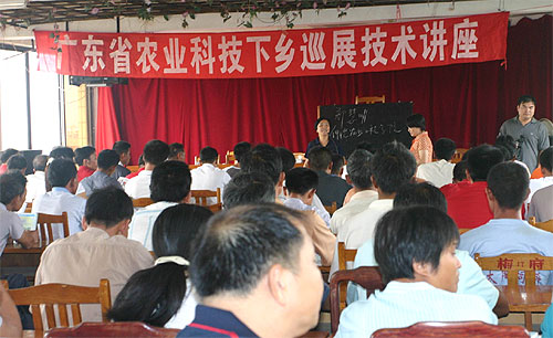本次送科技下乡活动在韶关市农业局积极组织和乐昌市、南雄市农业局的密切配合下,主要通过专题讲座、专家现场咨询等形式,收到了良好的效果。活动共举办了9场专题讲座:主要有辣椒(苦瓜、椰菜、青瓜)等蔬菜栽培技术、猪的养殖技术及猪病防治、柑桔栽培技术等,并通过幻灯片授课,图文结合,每场专题讲座都很受当地群众欢迎,特别是在南雄市珠玑镇,课后,许多养猪大户还团团围住我们的畜牧兽医专家罗筑鸣老师,提出许多养殖方面的问题,而授课的专家们也非常乐意,并一一给他们解答,并为他们留下自己的电话号码,欢迎农民随时跟他们联系。同时还在现场向当地农民群众和基层技术人员免费赠发了农业技术丛书3000多册,在2市(区)的5个乡镇9个专题中,有900多名农民群众和基层干部参加了培训;在农技咨询现场,专家们认真解答了农民群众提出的各种技术难题,接受咨询800多人次,受到农民群众的热烈欢迎。