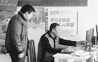 山东省嘉祥县万张镇万张村云农场村级服务站站长张建华在网上帮农民买化肥。