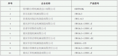 存在安全性问题企业及微耕机产品名单
