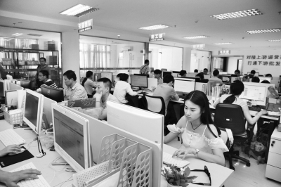 近日,四川省泸州市的一批年轻人在泸州西南商贸城的电商部内利用网店卖家乡的农产品。去年以来,该市积极搭建电商平台,以提供创业基金和实物等各种优惠政策,不断吸纳一批懂电脑、善销售的年轻人加入其中。 刘传福摄