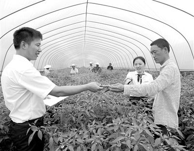 为支持温室大棚用先进技术实现远程控制,江西玉山县农联社信贷员向农户了解资金需求及生产情况。