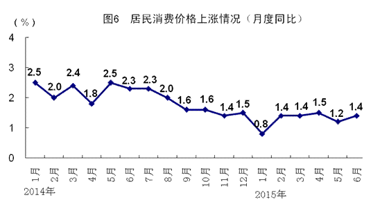 2014年各季度及2015年一、二季度GDP环比增速分别为1.6%、1.9%、1.9%、1.5%、1.4%、1.7%。