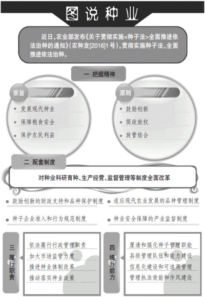 农业部发布《关于贯彻实施<种子法>全面推进依法治种的通知》要求:做好配套制度体系建设