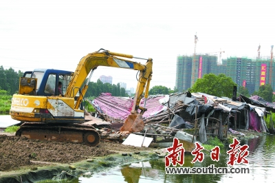 施工队正清拆建星村生猪养殖场。 南方日报见习记者 陈静 摄