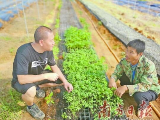 钟汉宏带领贫困户及村民齐心协力建设苗圃场。