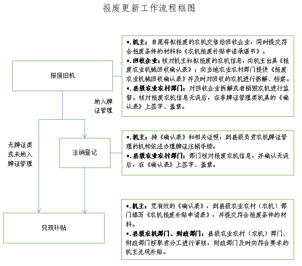 《通知》要求,各地应结合当年可安排用于农机报废补贴的资金额度,合理设置年度内可享受农机报废补贴的农机数量上限。县级农业农村(农机)部门应按照当年报废补贴机具总量不超过购置补贴机具总量的原则,合理确定年度报废补贴农机数量。