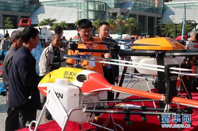 图为高科技企业展示的农用无人机吸引了不少当地农民驻足参观。新华社记者魏蒙摄