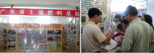 7月12—13日,在内蒙古呼和浩特市召开的第八届全国肥料信息交流暨产品交易会上,由广东省土壤肥料总站组织参展的广东省测土配方施肥成就展——“广东:测土配方施肥为农民增收添砖加瓦”深受广大参观者的欢迎。农业部种植业管理司胡元坤副司长、全国农业技术推广服务中心潘显政书记和栗铁申副主任等领导亲临我省展位,顿足良久,听取我省测土配方施肥专家组组长张育灿研究员的汇报,对我省谢悦新厅长、蔡汉雄副厅长等厅领导重视测土配方施肥工作的情况大加赞赏,并对我省采用控释肥作为水稻配方肥的效果和做法给予肯定,有关领导对我省测土配方施肥工作给予这么高的评价,这是对我省今后进一步搞好测土配方施肥工作的极大鼓舞和鞭策。