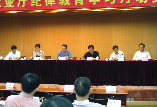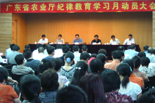 经省农业厅党组决定,即将在全厅开展2005年纪律教育学习月活动。8月5日下午,省农业厅党组召集省扶贫办、农业厅各处室、事业单位,召开了2005年纪律教育学习月活动动员大会。厅党组书记、厅长谢悦新同志和厅党组成员、纪检组长梁鸿庆同志在动员会上作了重要讲话。厅机关全体党员、公务员及事业单位正科级以上干部参加了会议。