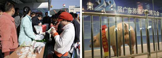 近年来,广东省种猪测定中心逐步完善种猪生产性能测定、基因检测服务和养猪产业博览会三大服务平台,积极推动全省养猪业从数量增长型向质量提高型转变,从养猪大省向养猪强省迈进。通过改革创新,拓展思路,养猪产业博览会逐步走出了“政府牵线搭台,市场商业运作、企业商家唱戏”的好路子,越办越好,成长为一个优秀品牌。博览会吸引了越来越多地区的养猪企业,特别是我省的山区和东西两翼的养猪企业。来自河源、梅州、茂名等地种猪场开始在种猪拍卖会上崭露头角。