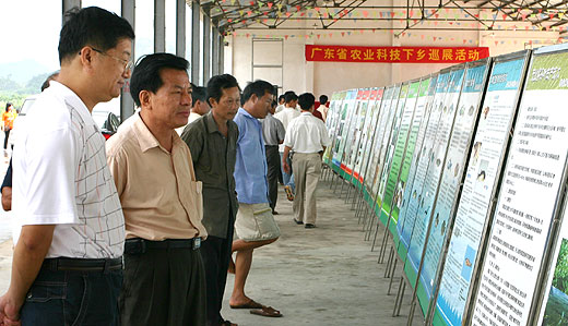这次科技巡展活动是由省农业厅和清远市农业局主办,厅科教处牵头,省农业展览馆承办,清新县、连南县及连州市农业部门组织协办的。参加科技下乡巡展活动的单位还有华南农业大学、省农科院,省农业厅畜牧办、植保总站、杂优站、土肥总站、农机推广站、环能总站、农干校、南方农村报和农民日报社等,共计专家、工作人员及记者39人,共带去农业科技资料6000多份,农业书籍6000多本,稻种400斤,兽药60包/瓶,农业科普展板60块,专家现场零距离面对农民咨询100多人次,来听课的农民有九百多人,一千多农民在巡展现场领取农业科技资料。