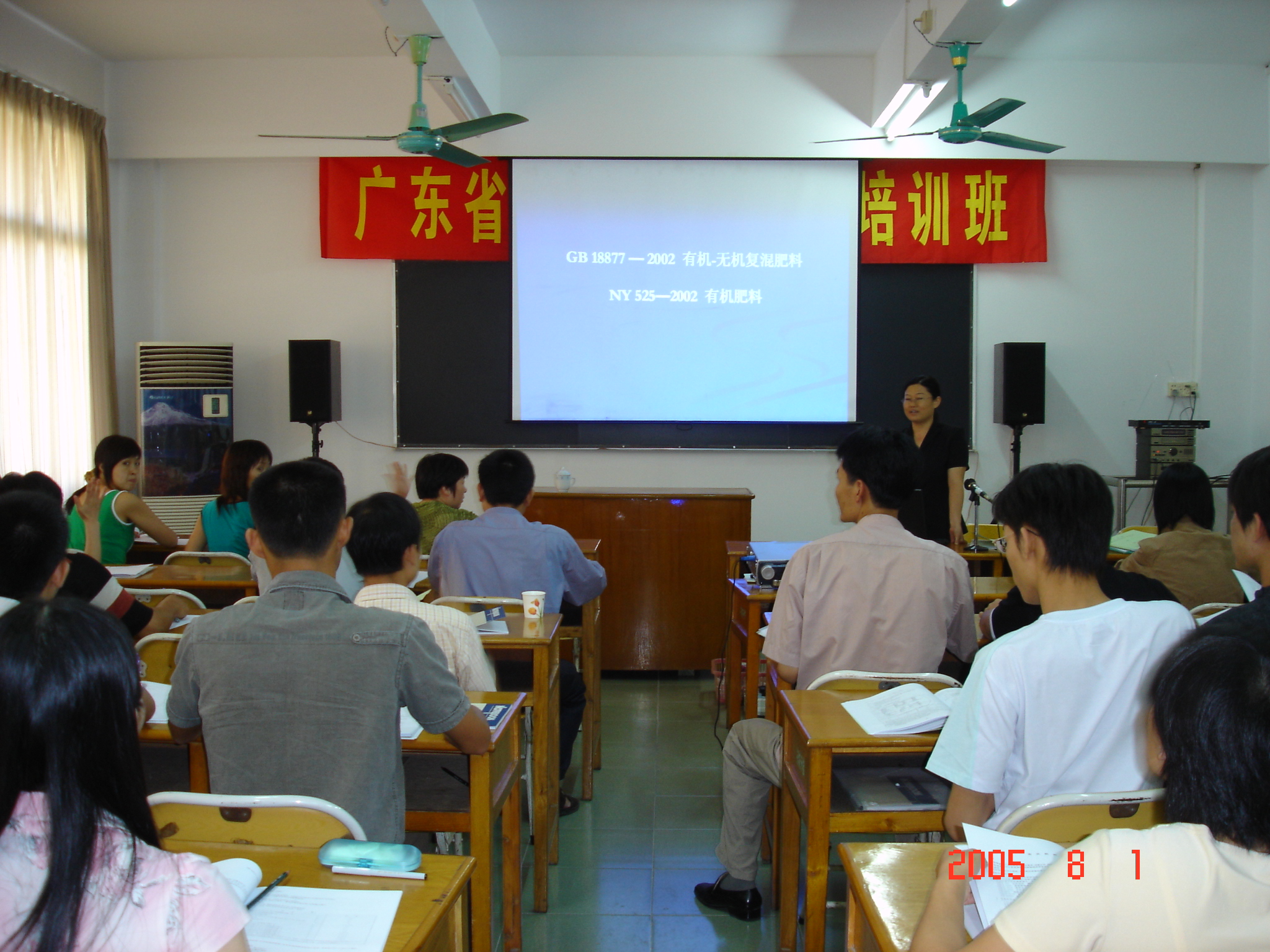这次培训班聘请了华南农业大学游植粦教授讲授了《复混肥料成分定量分析基础知识》,农业部肥料质量监督检验测试中心(广州)蔡婵凤、高凤玲、谢小玲高级农艺师对复混肥料(复合肥料)、有机-无机复混肥料、有机肥料三大类肥料涉及的国家标准、行业标准的检测原理、方法及常用标准溶液的制备与标定等内容进行了详细的讲解。通过培训,学员们掌握了复混肥料的检测方法,解决了他们在实际工作中遇到的很多问题。学员们普遍认为该培训班办得很及时、很成功。