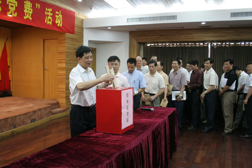 省农业厅积极响应省委的号召,今天(22日)上午组织全厅共产党员开展交纳“特殊党费”活动。厅党组成员带头缴交,党员领导干部率先垂范,广大党员干部积极响应,离退休老党员也纷纷拿出自己省吃俭用的积蓄,向四川灾区人民献爱心。短短半个小时,共收到674位党员交纳的“特殊党费”33.79万元。
