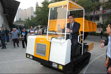 随后,马来西亚科学技术及创新部部长一行参观了农机所的成果展示厅和实验室,当部长看到农机所为马来西亚棕榈园运输棕榈果专门开发的运输车时,表现非常兴奋,坐到运输车驾驶室亲自体现一番运输车的操作过程,部长幽默风趣的举动引来笑声阵阵,现场气氛非常融合,双方希望以该设备的开发和合作为契机,加强了解,进一步加大合作的力度和扩大合作的领域。