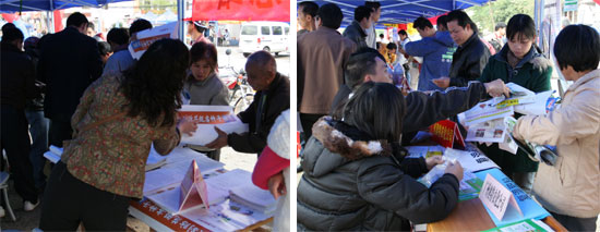 省、市、县有关执法和专业技术人员现场向农民朋友宣传讲解科学使用农资的知识