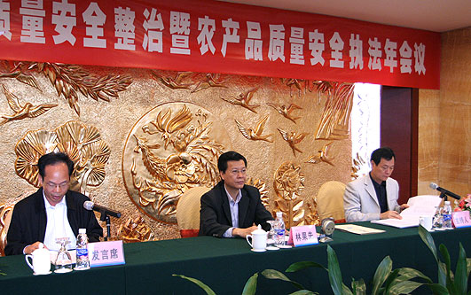 从会议获悉,日前,农业部已派出9个督导组对广东等9个省市农产品质量安全整治暨执法年活动情况进行督导检查,省农业厅也将于4月下旬组织督导组,分片深入到市、县、镇区、企业和基地,检查农产品质量安全整治暨执法年活动工作部署安排、责任落实情况,以及自查自纠发现的问题、采取的措施、工作进展及成效。同时制定了今年首次省级农产品质量安全监督抽查计划,将于4月中旬组织对省内5个城市的生产基地、养殖场、奶站和批发市场、屠宰场等的蔬菜农药残留、生猪瘦肉精、生鲜乳中“三聚氰胺”残留情况进行监督抽查。在5月下旬省农业厅还将组织开展农产品质量安全执法查处行动,针对执法检查和监督抽查中发现的问题,依法严厉查处。