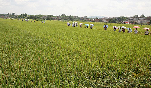 培训人员参观了兴宁市万亩水稻高产创建示范片、超级稻示范区和新品种展示现场。省高产创建专家指导组6名专家分别讲授了水稻、花生、玉米、马铃薯等作物高产创建关键技术。