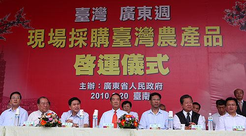 8月20日上午,广东省政府在台南县走马濑农场举行“台湾农产品现场采购签约及启运仪式”,广东企业现场采购了8个货柜农产品,货值30多万美元。谢悦新厅长主持了仪式。 >>详情