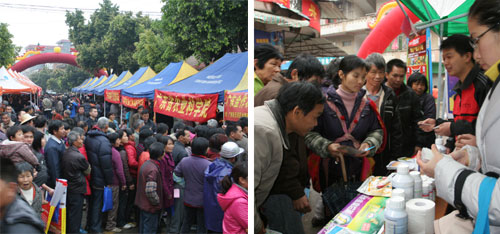 3月 18日,广东省“农业科技暨放心农资下乡进村”现场宣传活动启动仪式在云浮市云安县南盛镇举行,活动现场设立咨询点,宣传农业新科技、新品种,介绍农业法律法规和放心农资相关知识,解答农民疑难问题,接受对假冒伪劣农资的投诉和举报。活动举行了农业科技入户直通车授车仪式、农业科技人员全年全程科技服务行动授旗仪式,组织有关农资生产经营企业现场签订不经营假冒伪劣农资倡议书。根据当地春耕需要,现场还设置了专家讲座、农资知识问答和抽奖活动等环节,受到了农民群众的热烈欢迎,增强了农资经营企业的守法意识,提高了农民科学、安全生产意识和维权意识,为农民春耕生产带来真正的实惠。