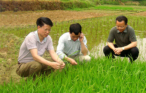 陆国煌总农艺师一行同茂名市领导、农业局负责同志深入化州的同庆镇,高州的石彭镇,茂港的小良镇、沙院镇,电白的电城镇、林头镇及霞洞镇,茂南的公馆镇、荔枝塘镇,信宜的池洞镇、朱砂镇等旱情较重的受灾区,深入田间地头,与当地干部群众一起分析旱情灾情,商讨抗旱抢插对策,鼓励当地有关部门和干部群众齐心协力,千方百计想方设法挖掘水源,引水办田,尽最大努力插完可插之田,4月底前实在无水办田的小部分田块,及时改种玉米、蕃薯、蔬菜等其它作物,并要求各级农业部门加强对田间管理的分类指导,积极开展粮食高产创建活动,夺取早造粮食丰收。