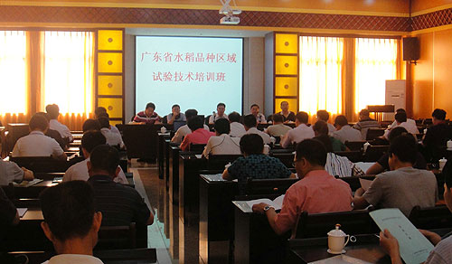 华南农业大学的唐湘如教授、省农科院水稻所的朱小源研究员、柳武革副研究员分别为学员讲授了水稻栽培、病虫害防治以及转基因技术应用等方面的知识。省农作物技术推广总站负责全省水稻区域试验管理的技术人员与广大学员就试验工作中存在的问题进行了广泛而友好的交流。