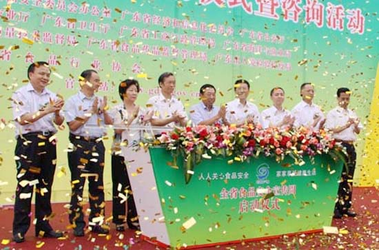 6月12日,广东省食品安全宣传周启动仪式在广州英雄广场举行,本次宣传周的主题是“人人关心食品安全,家家享受健康生活”。广东省政府副秘书长、省食品安全委员会办公室主任李捍东出席仪式并作动员讲话,省食品安全委员会相关成员单位相关负责人参加活动。我厅潘雪芬副巡视员率厅农产品质量安全监管处参加了启动仪式和现场咨询活动,现场派发了《农产品质量安全小知识》、《食用农产品标识管理》、《乳品健康与安全》等有关材料,并接受了消费者农产品质量安全咨询。