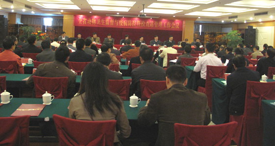 省农业厅党组成员、总畜牧兽医师蔡树淦作了重要讲话。蔡树淦指出,2011年,在省委、省政府,各地党委、政府和兽医主管部门的正确领导下,在农业部的指导下,我省各级动物卫生监督机构、动物疫病预防控制机构和广大动物防疫人员攻坚克难、奋力拼搏、扎实工作,动物防疫监督各项工作取得了显著的成效。一是深圳大运会动物卫生及动物产品安全保障工作任务圆满完成,实现了“动物卫生安全零事故、重大动物疫情零发生”的既定目标任务,得到了农业部和省委、省政府有关领导的充分肯定。二是妥善处置了我省部分地区发生的仔猪腹泻病疫情,成功应对了河南双汇集团“瘦肉精生猪”事件,最大限度降低了对我省生猪生产的负面影响。三是主要动物疫病与人畜共患病防控成效明显,全省上下认真落实免疫、消毒、监测、预警预报、无害化处理等综合措施,全年没有发生重大动物疫情。四是动物卫生监督工作水平明显提高。全省动物屠宰检疫规范年活动取得实效,监督执法巡查工作进一步落实,区域联防联控更加深化。五是兽医实验室检测能力明显提高,生物安全管理水平进一步提升,兽医实验室考核工作扎实推进。六是基层动物防疫工作条件明显改善,基层动物防疫队伍素质明显提高。七是公路检查站的监督检查水平明显提高,取得了“零投诉”的好成绩,树立了良好的执法形象。八是全省执业兽医考试再创佳绩,全省总通过率49.14%,远远高于全国平均水平。