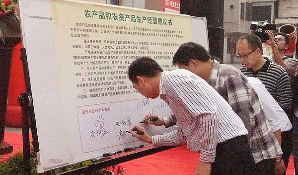 有关农资生产经营企业代表在活动现场签订了不经营假冒伪劣农资倡议书。