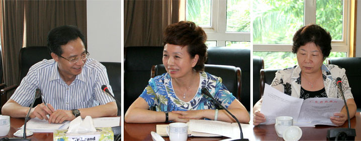省农业厅程萍副厅长(中)、省海洋渔业局文斌副局长(左)、省农业厅潘雪芬副巡视员(右)出席了会议