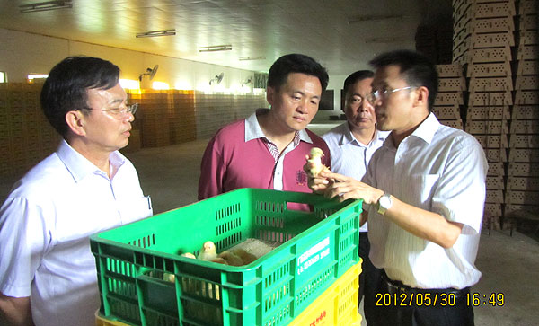 5月30日,广东省农业厅郑惠典副厅长一行到省农业科学院兽医所、畜牧所调研畜牧兽医科研进展和科技产业发展情况。在省农业科学院陈栋副院长陪同下,分别认真听取了舒鼎铭所长介绍畜牧科研方向、进展和成果,鸡新品种配套系、新饲料添加剂等自主创新品牌业绩,科技产业发展等情况;陈琴苓所长介绍动物疫病防控科研成果、动物公共卫生、产学研成效、动物用生物制品研究、疫病诊断技术服务等情况;分别深入到动物疫病诊断中心、省兽医公共卫生公共实验室、动物疫病远程诊疗技术服务平台、家禽育种孵化基地和饲料添加剂产学研基地等进行调查了解,同时进行了互动交流。