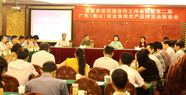 7月16日,广东省农业厅在佛山市召开全省农业交流合作工作暨第二届广东(佛山)安全食用农产品博览会筹备会。程萍副厅长、陈正辉副巡视员,佛山市副市长王玲等出席会议并作讲话。省农业厅交流合作处杨志平处长主持会议,省农业科研院校、各地级以上市农业局有关同志及省农业厅有关处室、单位负责人参加了会议。