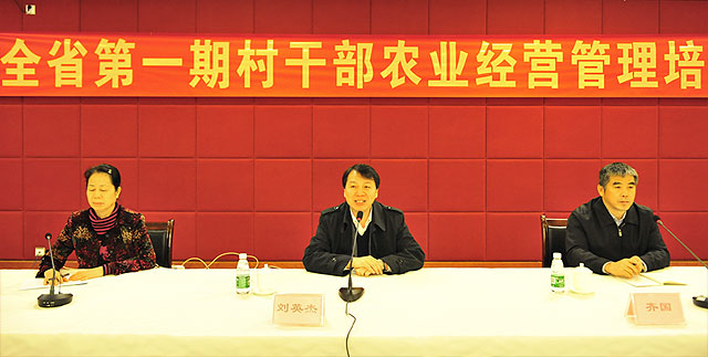 为深入贯彻落实中央关于加强农业农村人才培养的系列文件精神和广东省农业农村人才工作部署,切实加强农村实用人才带头人和大学生村官培训工作,广东省农业厅于12月3-6日在仁化县周田镇举办第一期村干部农业经营管理培训班。农业部人事劳动司刘英杰副司长、中央农业广播电视学校齐国副校长,省农业厅党组成员、巡视员余俭娥同志参加了培训班开班式等活动。