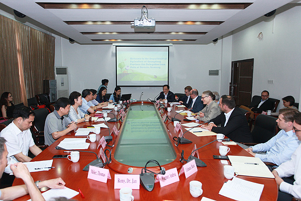 2015年5月14日下午,程萍副厅长接见了到访省农业厅的德国巴伐利亚州行政管理培训团一行15人。程萍副厅长首先对培训团一行到我厅考察学习表示了热烈的欢迎,并通过PPT的形式形象地向培训团介绍了广东省情及现代农业的发展情况。培训团团长巴伐利亚州行政管理培训主任伯格瑞博士代表培训团对我厅热情友好的接待表达了衷心的感谢,并强调了此次参加培训的人员都是巴伐利亚州政府各管理部门的年轻力量,都是有希望成为巴伐利亚州未来的骨干管理人才,充分说明了此次到我省开展培训项目的重要性。接着,培训团还就所关心的农产品出口、农业补贴以及农业标准认证与执行等方面进行了提问,我厅参会的相关业务处室负责人给予了解答。