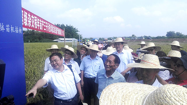 广东省农业厅党组成员蔡树淦全程参加了测产验收过程,并代表省农业厅向袁隆平院士等专家到广东指导表示欢迎和感谢!