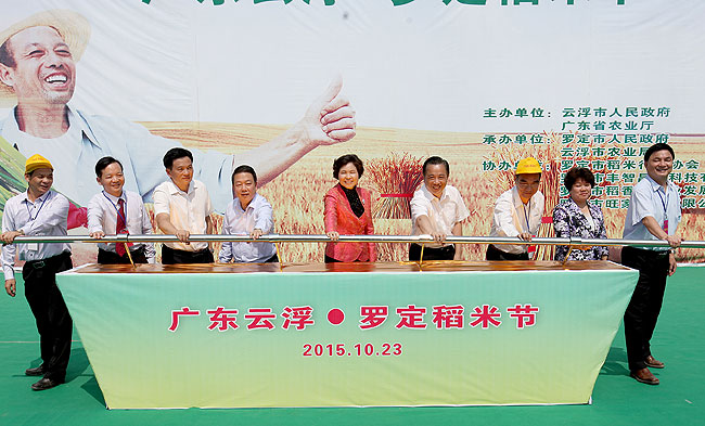 省农业厅,省质监局,云浮市委、市政府,仲恺农业工程学院负责人,各地市农业局负责人,云浮各县(区)政府负责人,省及港澳稻米经销客商代表,省种粮企业或大户代表等共1000多人参加活动。与会人员现场参观了罗定亚灿米有机系列研发中心、罗定市稻香园农业发展有限公司、罗定市旺家农业有限公司产品展示馆。开幕式上还举行了罗定稻米地标产品专用标志授牌仪式。