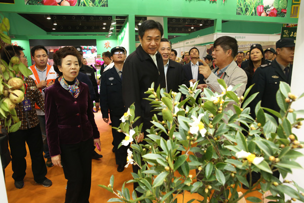 在参观广东名特优新农产品展示区时,邓海光非常关心产品推广情况。邓海光说,要积极打造“岭南佳果”系列,根据不同时节,把广东当季的名特优新农产品大力推向市场。