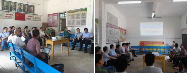 省农业厅驻村工作队在村委会向大家汇报了自4月21日率先完成对接后,正式驻村以来的工作情况,着重介绍了那毛村的村情民情、当前加紧开展的全面入户核查和贫困户重新找准工作的进度,汇报了初步形成的年度帮扶计划思路,提出了工作中遇到的困难和疑问。