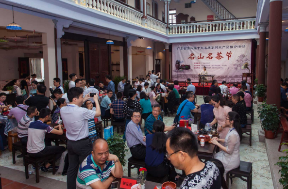 上午名山名茶节活动现场,包括获评广东省第二届“十大名牌”系列农产品称号的潮安县凤凰南馥茶业有限公司在内的20多家潮州知名茶企,安排了专业茶艺师现场冲泡名茶给观众品茗,并演示了潮州工夫茶的泡茶工艺。