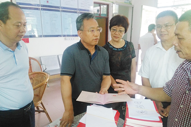 为贯彻落实省委、省政府有关决策部署,层层压实责任,加快推进农村土地承包经营权确权登记颁证工作,8月14日-15日,广东省农业厅副厅长、省确权办常务副主任牛宝俊率队前往阳江市开展农村土地确权调研督导工作,就农村土地确权工作集中约谈了阳江市各县(市、区)分管领导和农业局局长,深入阳西县塘口镇车湖村、上垌村和海陵区山底村实地调研,与农民群众沟通交流农村土地确权有关情况,广泛听取各方意见建议。