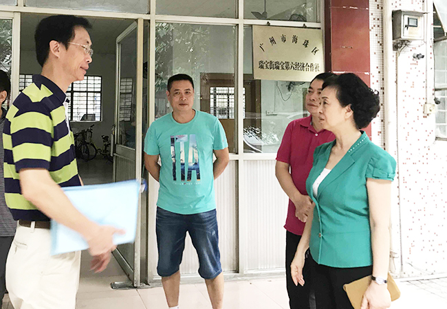 8月17日,广东省农业厅巡视员程萍率队前往土地确权挂钩联系点广州市荔湾区、海珠区开展农村土地确权调研督导工作。督导组认真听取了两区农业局及土地确权办工作情况汇报,实地督查了荔湾区东沙街沙络经济联社和海珠区瑞宝街瑞宝第六经济合作社工作进展情况。